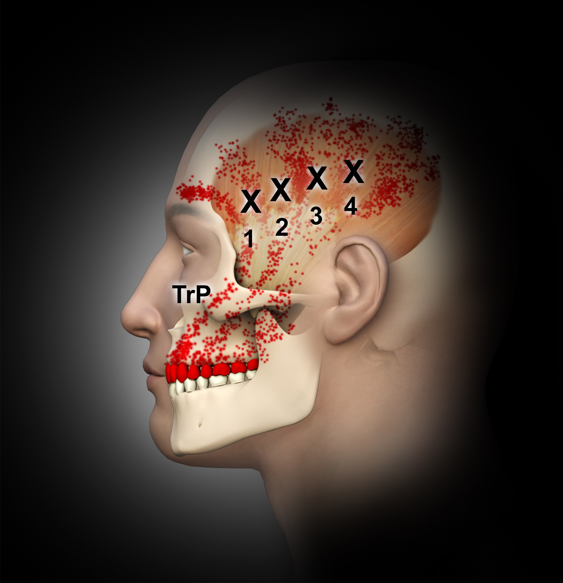 BoNT-A is an injectable pharmaceutical agent derived from the bacterium clostridium botulinum. Given in small doses, this purified protein can be used to selectively relax the strength of skeletal muscles by interfering with the release of acetylcholine at the neuromuscular junction. Hence, the muscle will not be able to contract with the same intensity because the amount of available neurotransmitter has been reduced. As stated above, the constant, sometimes dysfunctional, contraction of the muscles of mastication can be the primary cause of the trigger point in MPS-related TMD. When BoNT-A is placed in several spots in the belly of the muscles, it will reduce the hyperactivity in the muscle and, in turn, reduce the patient’s pain.17